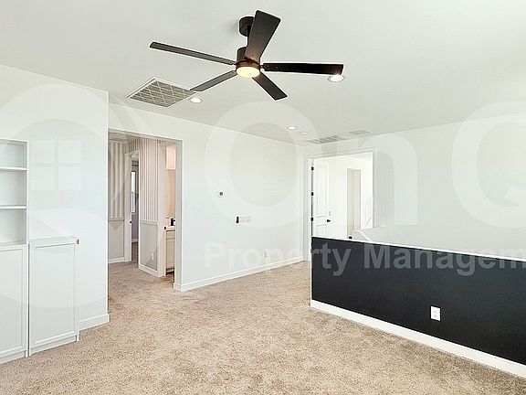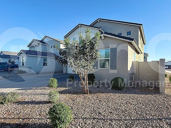Available Now! Welcome to this beautifully upgraded smart home that perfectly blends comfort, technology, and style. This spacious 2,568 sq. ft. two-story residence features four bedrooms and three bathrooms, designed with modern living in mind. The chef's kitchen boasts quartz countertops, Cafe appliances, and custom tile, opening to a bright and airy living space with new luxury vinyl wood flooring, fresh paint, and stylish custom light fixtures throughout. The home also offers a dedicated office with double doors, ideal for working from home, and a large loft that can serve as a playroom or secondary living area. Each room is equipped with ceiling fans for year-round comfort. The lushly landscaped backyard includes a fenced garden and ample space for outdoor entertaining, while the attached garage comes equipped with a Tesla charger. Conveniently located near Sprouts, Target, and local dining options, this home offers both comfort and accessibility in the heart of San Tan Valley.