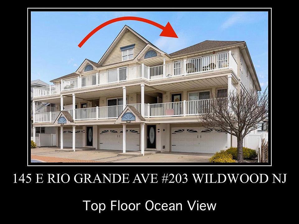 Have You Been Searching for a Top Floor with some Ocean Views? Well, Welcome to 145 E Rio Grande. You Will love being in the Center of it All. This property is perfect for people watching and access to all of your favorite attractions and restaurants (Mudhen, Dogtooth, Poppis etc). Just 2 blocks to the beach, the Wildwood Sign and world famous Boardwalk. Located in close proximity to the Convention Center, this property is ideal for those looking to produce an amazing rental income. This condo has one of the largest front porches of any home in the Wildwoods. Come sit, relax and enjoy your favorite cocktail. There is 2 car parking in your garage as well as an additional covered spot in your driveway. While there is central air that works well, the owners have been proactive and installed an additional split system unit in the Living room to keep you extra cool on those 90 degree days. There is a side and backyard for grilling or for the kids to play as well.