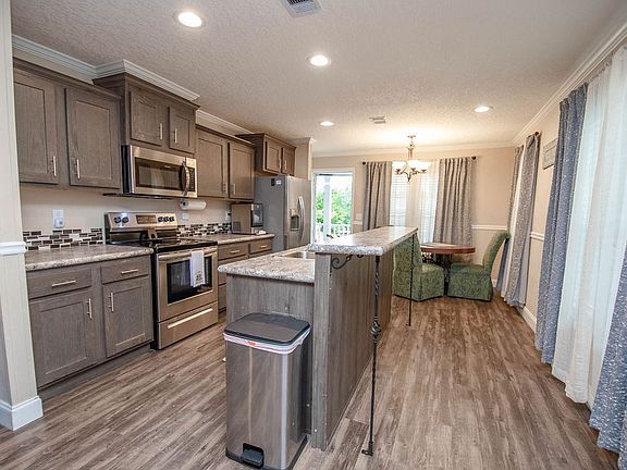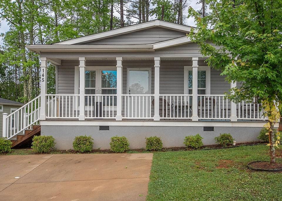 Discover this captivating 2020, 3 bed 2-bath 1296 sq/ft modular home nestled in the charming Coweta Hills community. As you step inside, be greeted by the inviting open layout adorned with wall-to-wall LVP flooring, setting the stage for comfortable living. The farmhouse-inspired kitchen steals the spotlight, boasting an expansive bar, rustic mahogany cabinetry, stainless steel appliances, and a stylish tile backsplash. Entertain effortlessly in the family room, featuring a custom wall-sized bookshelf with built-in cabinetry and attractive tile accents. Retreat to the master suite, complete with dual vanities, a relaxing garden tub, a separate shower, and a generously sized walk-in closet. Outside, enjoy the ample yard space and convenient storage shed. Embrace the community's amenities, including luxurious modular homes, a playground, an in-ground pool, and ample green space with a dedicated dog park. Lot rent is currently $825 per month and is not included in the cost of the home.