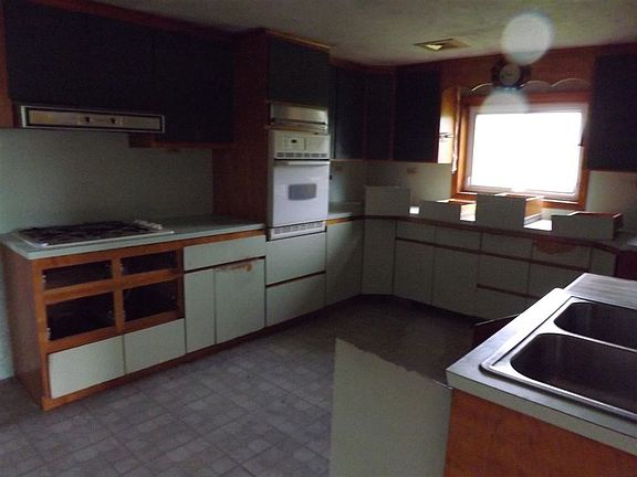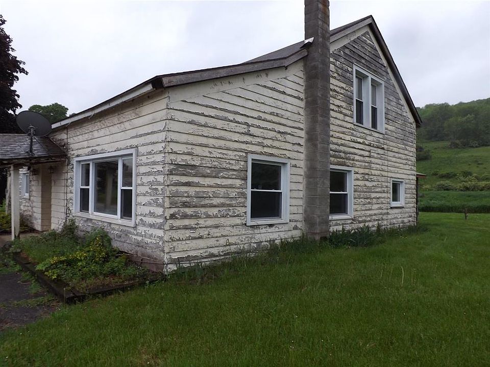 Four bedroom two full bathroom farmhouse on three and a half acres features newer replacement windows, on-demand hot water, and an open floor plan. Property needs work but is structurally sound and has great bones.