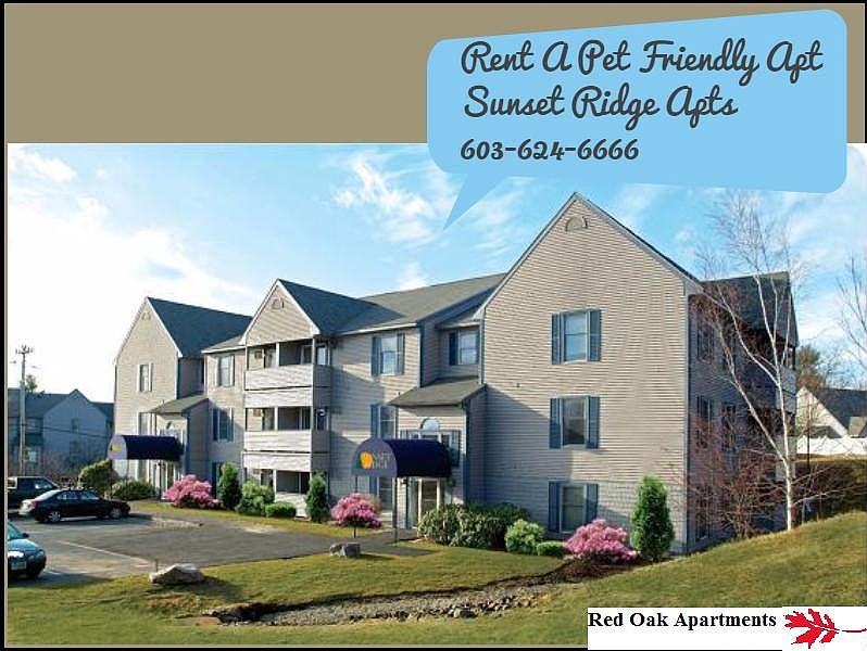 CALL US TODAY! 603-624-6666 SUNSET RIDGE 1 bedroom 1 bath 633sqft $1,149 APARTMENT FEATURES: - Fully applianced kitchens equipped with dishwashers and garbage disposals - Private patio or balcony - Programmable heat control - Built-in AC units - Accent wall option - Same floor laundry facility - Secured entry buildings - Storage spaces SOCIAL FEATURES: - Pet friendly community (restrictions apply) - Community center - Newly equipped cardio room - Swimming pool - Updated playground - Grilling station - Free on-site parking - Designer-crafted landscaping - 24-hour emergency maintenance - Adjacent to both Routes I-93 and 101 - Located on Manchester Transit Bus Route 1 Welcome home to Sunset Ridge Apartments! Take Advantage of our Exclusive NO SECURITY DEPOSIT Program. When you move in you simply pay for your first month's rent and a non-refundable Lease Protect Bond starting at $299 with your good credit, landlord references and income qualification.