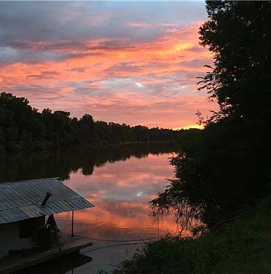 WOW! WHAT BEAUTIFUL SUNSETS FROM THE RIVER BLUFF! Fishing at it finest!Across the river from this home are beautiful lakes and wildlife abounds!!! Metal roof, 10 X 35 front porch, 10 X 12 cooking deck, 33' walkway to river, mud room, open kitchen and family room. Floating boat dock.