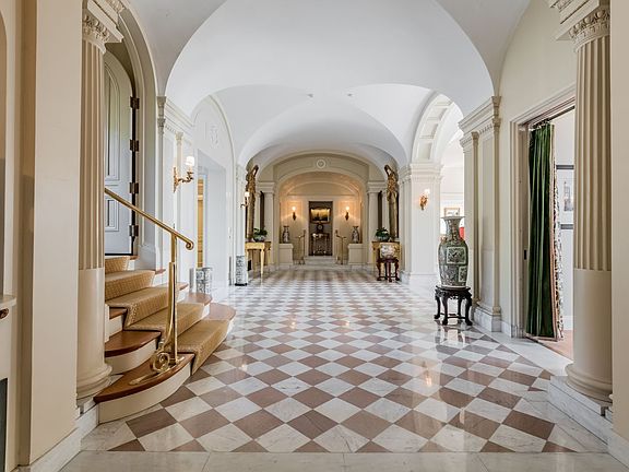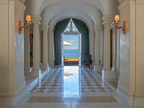 Statuesque and elegant, East of Eden is one of the few remaining turn of the century 'Gilded Age' mansions to survive the devastating wild fire of 1947. This totally renovated and updated 15,000 sq. ft. residence was built in 1907 in the Beaux Arts style with Mediterranean Italian overtones. Architectural details abound throughout the formal living, dining and game rooms. This primary floor was designed for entertaining on both a lavish or intimate scale, with a huge expansive brick deck and covered porch overlooking the many islands of scenic Frenchman Bay. There are seven primary en suite bedrooms, all with fireplaces, and attractive water or scenic views. The third floor offers eleven smaller bedrooms, two bathrooms, a large, walk-in linen closet, and several storage rooms. A two-person passenger elevator services all three residential floors, as well as the basement.A neighboring parcel known as Buonriposo, was recently added, bringing the total acreage to 9 acres, and waterfront to 1,100'. The scenic lawns and water elements also overlook Frenchman Bay, with its many conserved glacial islands and mountains. While East of Eden has been fully modernized, its' architectural heritage was carefully preserved. Additional amenities at this prestigious estate include an eight car garage, maintenance building, deep water dock and full property generator.