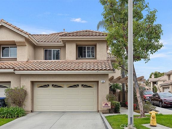 Nestled within the Belterraza community, this delightful home stands out as one of the few residences with a full driveway. The layout is thoughtfully designed, featuring ample natural light streaming through several large windows and an open floorplan. The spacious kitchen has been tastefully updated, boasting granite countertops and a stylish backsplash. It offers room for both a breakfast nook and a breakfast bar, seamlessly connecting to the dining room. The flooring, adorned with rich, dark wood-look tiles, adds to the home’s allure. A generous family room, complete with a cozy fireplace, provides the perfect gathering spot for family and friends. Upstairs, you’ll discover an oversized Master Suite with high ceilings, a sliding glass door leading to a private balcony, and a master bathroom featuring dual sinks and two closets. Two additional secondary bedrooms and a full secondary bath complete the upper level. Step outside to the inviting backyard, where a pavered patio awaits, surrounded by lush green grass. The front porch is thoughtfully enclosed with a gate for added privacy. This home is part of the award-winning Arroyo Vista K-8 boundaries and is situated within the vibrant community of Rancho Santa Margarita. Residents enjoy access to four junior Olympic-sized pools, tennis courts, basketball courts, pickleball courts, playgrounds, and numerous sports fields.