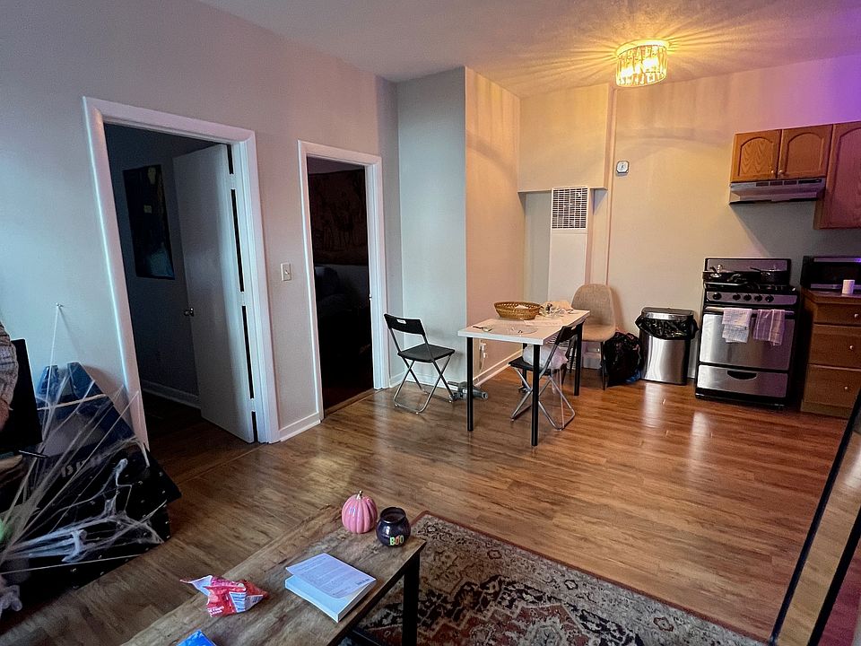 Modern eat in kitchenLaundry in the buildingClean updated bathroom