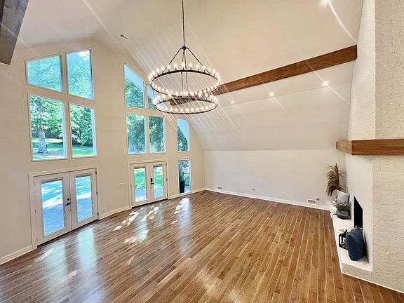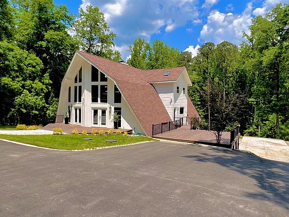 This A Frame Home has been renovated and REBUILT w/ exquisite, upscale craftsmanship! Expansive Circular Driveway w/ additional parking in front and Huge Parking pad at Lower level w/ 2 Car Garage. Soaring 22' Ceilings, Custom Hardwood Floors, Gourmet Kitchen w/ Bosch appliances, Quartz Countertops, Dual Sinks, Scullery & more! Main Level offers 2 Guest Suites, Each w/ Private Bath and Balcony. Second Floor Master Suite (900sqft) w/ Fireplace, Vaulted Ceiling & Private Balcony! Master Bathroom w/ Shower Room (Dual Shower), Soaking Tub, and 2nd Laundry. Backyard w/ peaceful Pond, Waterfall & Fire pit for Entertaining. Basement can accommodate multi-generations or working professionals w/ Office, Bedroom, Bathroom, and Huge Bonus/Living area w/ Kitchenette. All on an Acre, no HOA, No City Taxes!