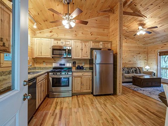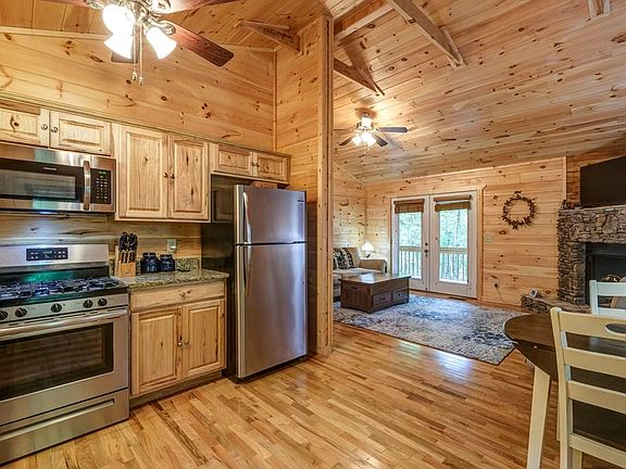 PARTIALLY FURNISHED, LOG SIDED cabin nestled in the woods of the Fern Forest community. This 2/bed, 1/bath cabin shines in every way with a metal roof for low maintenance. Step inside your open floor plan Great Room with a stacked stone fireplace to warm the chilly mountain evenings. Wood interior throughout with exposed rafters & lots of windows for plenty of natural light. Your kitchen offers granite, SS appliances with gas range. Down the hall is your laundry area, Master bedroom, guest bedroom and bath. French door access in the Great Room leads to your screen porch to relax and enjoy nature in a peaceful and tranquil setting. Fiber optic internet and paved driveway, too!