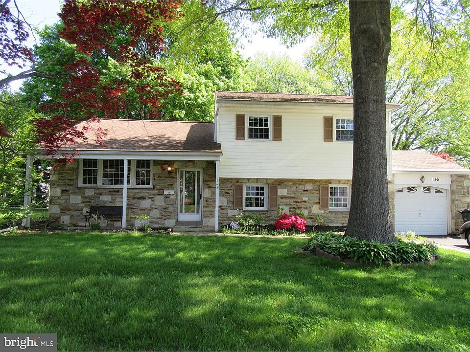 Great "Original Burgundy Hills" split level. Situated on a side street with a beautiful yard. This home has been lovingly maintained by owner, with newer kitchen and updated 2-1/2 baths. MBR with newer bath. Replacement vinyl tilt-in windows. C/A. Hardwood floors under carpet assumed to be in good condition, as owner had not pets. Gorgeous entry foyer with hardwood floors and custom railing. The kitchen is remodeled with oak cabinets and corian counters. D/W, G/D, pantry. Sliders lead to big patio/deck. There is also a cozy covered front porch. Full basement for storage, or possible living space. Pull down stairs to walk-up attic. This is a four bedroom home, three upstairs -- the fourth bedroom is on the lower level off the family room. In-law possibilities, at home office, or expand the family room area. Stunning full wall brick fireplace in family room. Walk to state-of-the art nearly new Davis Elementary School, many fine restaurants and pizza shops, shopping centers, SEPTA Station, and the wonderful Tammanend Park. A fantastic place to call home.