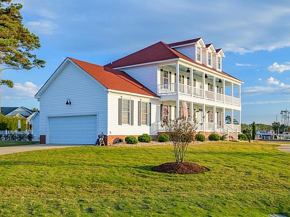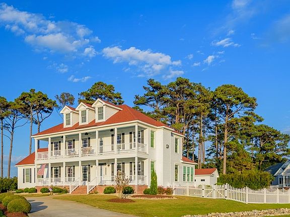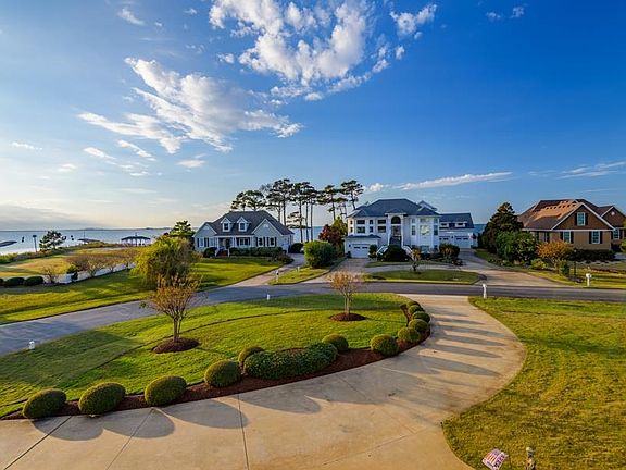 Gorgeous Semi-Soundfront home in the coveted Heritage Point neighborhood on the North End of Roanoke Island. This home has views to die for from all angles. Enjoy sunsets from your living room, sunroom, front porch, balcony, & pool. The views of the sound and harbor make this one of the best locations in Heritage Point. Sitting on an expansive corner lot with a fenced in back yard perfect for fur babies, children, or gardening and a curb appeal like no other. The outdoor living space will charm any buyer that enjoys entertaining with family and friends around the large in ground pool with a patio large enough for any size gathering. There is a pool house for storage of all things gardening, pooling, or beaching. The outdoor shower is top notch with a changing room. The outside space can even be enjoyed in the winter evenings with the fire pit and lounge furniture. There is access from the pool area to the garage, fenced in yard, & Florida Room. The Florida Room is a gorgeous sunroom off the back of the home that is perfect for morning coffee or an afternoon cocktail. Curl up with a great book and enjoy the many views from this quiet space. Venturing inside the home you will find a spacious living area with a thermostat controlled fireplace & large windows to continue the views. The open floor plan allows for the current office space that could easily be made into a dining area. The kitchen is grand with granite countertops and stainless appliances and a pantry. Just off the kitchen there is the laundry area with built in shelves and cabinets. This area is also a dry entry from the garage. Just off the kitchen is also the formal dining room with a second fireplace. This room could also be made into a cozy den or office. Continuing to the second level you will find a landing that offers access to the top level balcony with ceiling fans and views to please everyone. The huge Master Bedroom is dedicated to the westside of the home with vaulted ceilings and an ensuite bathroom with walkin closet. The ensuite bathroom is large with two vanities, a tiled walkin shower, and a jet tub. The spacious walkin closet has room for his and hers. On the east side of the second floor you will find Two Guest Bedrooms & a shared bathroom. One bedroom is set with bunkbeds and the second has a queen and views of the sound. These two rooms share a bathroom with two vanities and a tub/shower. On this level there is access to the enormous attic space over the garage & the upstairs bedroom. The attic offers a massive amount of space for storage and all the Christmas decorations. Other extras include the generator, landscaping, & outside storage space.