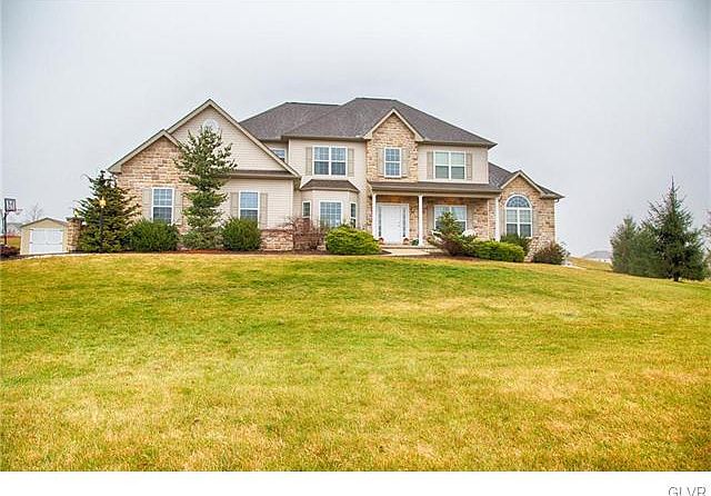 This GeorgeAnn custom built colonial offers a 1st & 2nd floor master all in the Nazareth School District. The home leads you through the center foyer into the kitchen which features many upgrades such as granite countertops, stainless steel app., double oven, oversized center island and large sunroom off the back. The first floor offers an open floor concept which makes this home seem even more spacious. You can see the in-ground pool with professional landscaping from the family room which feature vaulted ceilings and a stone front gas fireplace. The 1st floor master bedroom offers walk-in closet and master bath with both a jetted tub and stand-up shower. The 2nd floor also has a large master bedroom with oversized walk-in closet and upgraded master bath. The 3 additional bedrooms and hall bathroom round out the rest of the upstairs living space. The basement is partially finished and offers ample space for entertaining. Close to major rts. 33, 78, 80, and the PA Turnpike.