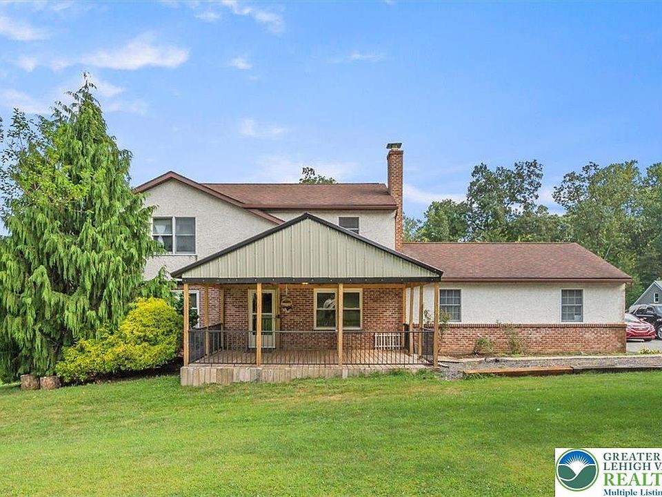 Discover this spacious 3-bedroom, 3-bath Colonial set on a private 1-acre lot with mature trees and peaceful mountain views. Offering 1,651 sq. ft. of well-planned living space, the main floor features a bright living room with oversized windows, a formal dining room, and a cozy family room with a brick fireplace. A full ADA-accessible bath with laundry on the first floor adds comfort and flexibility. Upstairs, the primary suite includes two walk-in closets and its own full bath, while two additional bedrooms share another full bath for convenience. Outdoor living is easy with a newer covered front porch and a large back deck, perfect for gatherings. The full basement with propane stove provides excellent potential for future living space, a workshop, or abundant storage. A 2-car garage, extra parking pad, and paved driveway offer ample parking. Additional highlights include central AC, walk-in closets, and low property taxes. Located in the Brandywine Heights School District, this home combines privacy with accessibility. Commuters will appreciate the short drive to Routes 78, 22, 73, and 100, while leisure seekers are only 15 minutes from Bear Creek Resort and close to shopping, dining, and conveniences. A versatile home offering comfort, space, and convenience in a serene setting—ready for its next chapter.