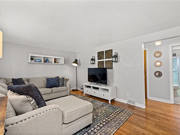 Charming, cute, move-in ready...whichever adjective that you use, this home has it! You’ll love the original charm of hardwood floors but appreciate modern upgrades such as an updated kitchen (2016) and central air conditioning (2020). The main floor boasts a beautiful living room, dining room, first floor bedroom and full bath. The upper level has two additional bedrooms, one of which is being used as a walk-in closet. If that’s not enough space for you, the finished lower level provides an amazing opportunity for additional living, game room or den…you decide! It also includes a second full bath and laundry room. Parking is easy with an integral garage. With the flat backyard, you’ll love the outside of the home as much as the inside. Welcome Home!