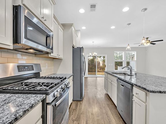 - Features: Breakfast Bar, Kitchen Island, Pantry, Stainless Steel Appliances, Solid Surface Counters