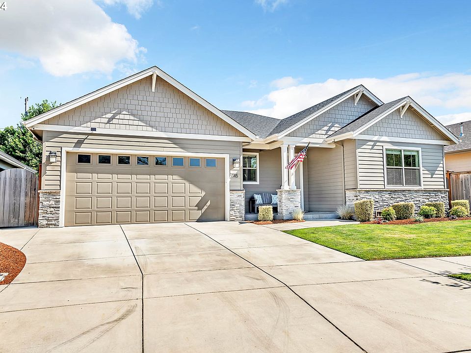 Single-level home in an esteemed Santa Clara neighborhood. The Great Room connects seamlessly to the Kitchen and Dining area, featuring elegant tray ceilings. Highlights include hardwood floors, a spacious quartz slab counter with a large island, stainless steel appliances, and a pantry. The Owners' Suite boasts quartz slab counters, under-mount sinks, a custom-tiled shower, and floors. Accent lighting enhances the entire home, while a finished and insulated garage includes attic storage. Enjoy outdoor living with a covered porch and patio. Come see today!