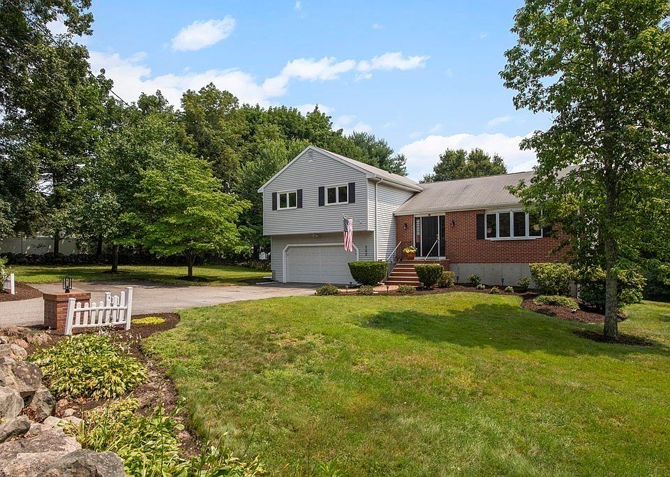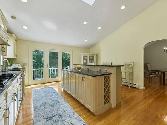 Nestled beneath towering trees on a majestic near-acre lot in desirable Medfield, this gracious multi-level home with four stories of living space will "have you at hello!" Enter into the foyer that opens into a living and dining room with gleaming hardwood floors and a soaring vaulted ceiling that adds to the feeling of spaciousness and light. Bright and cheerful custom-built kitchen with cabinets galore, double wall oven, gas cooktop, center island with seating, granite counters, skylight, & recessed lights. A cook's delight! Perfect for family get-togethers. Bedrooms and modern bath on the upper level. Primary bed with private full bath. One level below is a lovely family room with a gas fireplace, sliders out to a stone patio, and a half bath. Attached 2 car garage. The lower level consists of an entertainment room with a built-in bar, sliders to patio and koi pond, and a large laundry room. Nearby acres of walking/biking trails. **Offer deadline set for Monday July 31st at 4pm!**