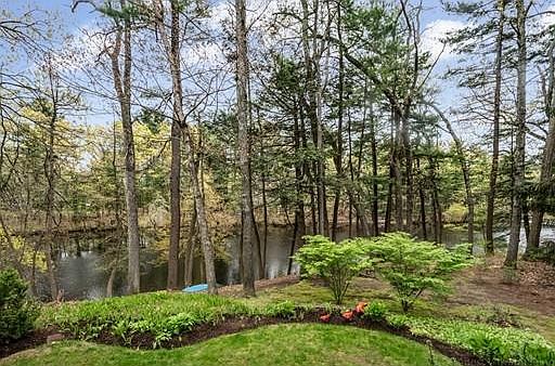 Waterfront paradise meets suburban luxury! The extraordinary setting for this young, custom colonial on the banks of Kennedy's Pond is as stunning as the home itself. High ceilings, custom millwork & designer finishes adorn the interior, while stone walls, abundant foliage & an iconic fire-pit along the shoreline accentuates the essence of waterfront living. Host alfresco dinner parties on the mahogany deck while your guests enjoy an afternoon of kayaking or fishing on the pond. And when the seasons change, sit fireside in the intimate family room open to a newly renovated eat-in kitchen with timeless white cabinetry & a granite topped center island, while watching a game of pond hockey happening in your own backyard! At the end of a long day, retreat to the en-suite master - in elegant hues of green & blue, blending seamlessly with the scenic wooded & water views - or one of 3 additional bedrooms & 2 full baths. Expansive 3rd floor bonus room & full bath offers lounge & guest space!