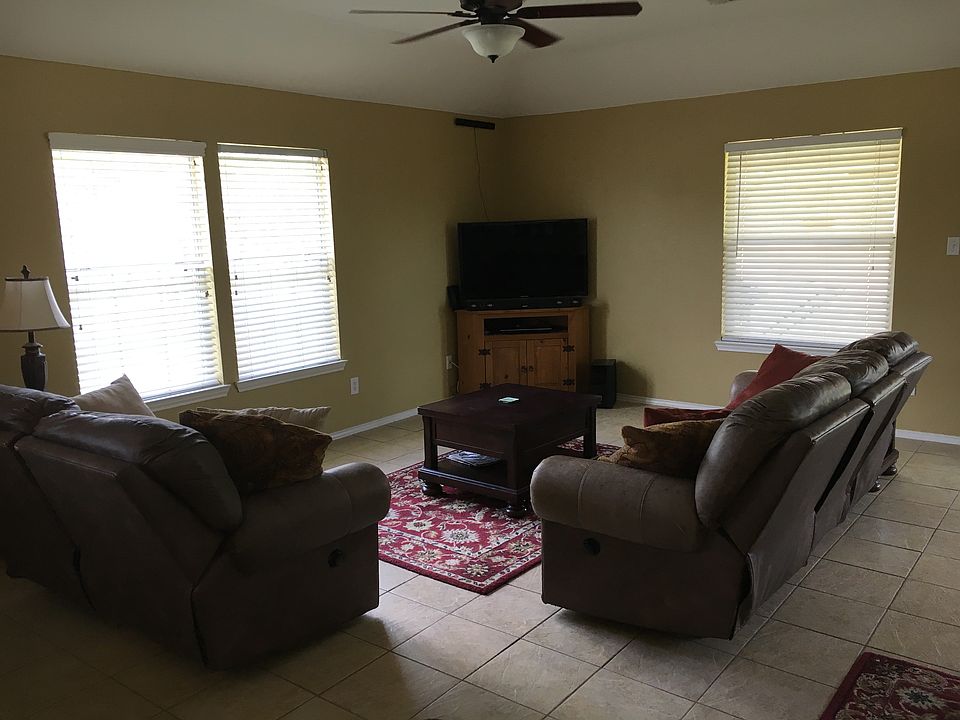 Nice 4 bedroom two bath home on an Acre of land! Open floor plan wraps around the kitchen with a breakfast area, living room and dining area separated by a half wall. The large pass-thru toward the living room and bar-height counter by the breakfast room give this area a very large feel and is great for entertaining. There is tile back splash in kitchen, as well as tile on the floor in all common areas and the master bedroom and bath. The two bedrooms on the split side of the home have carpet, while the small one next to the master has laminate.