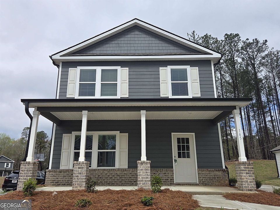 The Dallas Plan is a beautiful home located in the sought-after Orchard Park Subdivision. This floor plan features 4 bedrooms, 2.5 bathrooms, and a 2-car garage with a long driveway. it boasts an open concept design that's perfect for family gatherings. The spacious kitchen has an island, soft-close cabinets, and granite countertops. Other features include 2' faux blinds on front windows, stainless steel appliances (microwave, dishwasher, and electric free-standing range), LVP flooring throughout the main level, carpet in the bedrooms, and LED lighting throughout the home. There is also a half bath downstairs for convenience. On the second level, you'll find a nicely sized primary bedroom with a spacious walk-in closet and an en-suite bathroom with granite countertops and a dual vanity. Additionally, there are 3 more bedrooms and a full bathroom on the second level. This home is USDA-approved, and 100% financing is available. We're offering great buyer incentives, but they're only available when using our preferred lender. The home is completed and ready to move in! **Please Use 100 Heard Lane Covington, GA 30014 to reach homes in the back of the community. ***