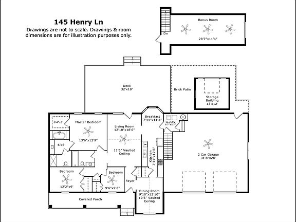 - Rooms: Dining Room, Bonus, Utility/Laundry, Kitchen, Bedroom 2, Bedroom 3, Eating Space, Master Bedroom, Garage, Storage Area
