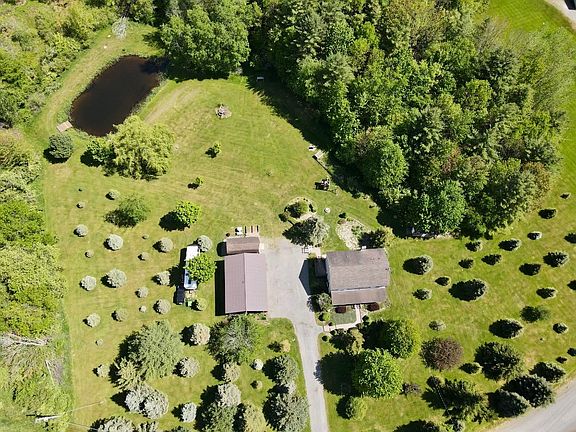 - Features: Sloped Down, Garden, Pond on Lot, Views, Wooded, Landscaped