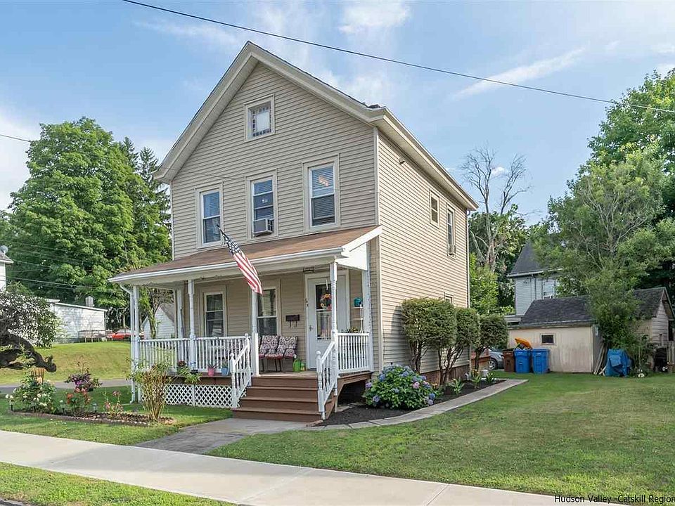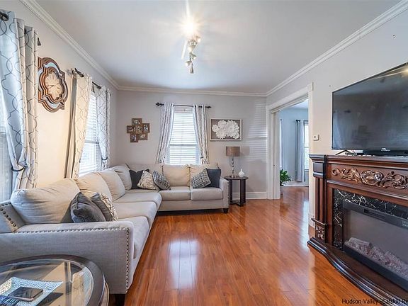 Move in ready! Renovated two story offers gourmet kitchen with custom wood cabinets, granite counters, marble floors and s/s appliances with gas range which features two ovens. Custom hall bath and powder room. Floors 5 years old and 200 amp electric service completed two years ago. Enjoy entertaining in the spacious living and dining rooms. Maintenance free exterior with vinyl siding and replacement windows, one year old deck and new front porch decking and porch roof. Situated on corner lot with lovely gardens and new sidewalks. Convenient location close to the Historic Rondout area of Kingston with great shops and restaurants.