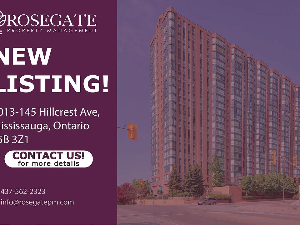 Spacious 2+Den Condo in Central Mississauga 1,000 Sq Ft Welcome to 1013-145 Hillcrest Ave, a bright and spacious 2-bedroom plus den, 1.5-bathroom condo offering 1,000 square feet of comfortable living in a highly sought-after Mississauga location. This unit is perfect for families, professionals, or anyone looking for a well-connected home with generous living space.The open and functional layout includes a large living and dining area, a versatile den that can be used as a home office or guest space, and two well-sized bedrooms. The kitchen is equipped with ample cabinetry, and the primary bedroom features an ensuite powder room for added convenience.Located just steps from Cooksville GO Station, major highways, shopping, dining, and schools, this condo provides easy access to everything you need. Don't miss this opportunity to live in one of Mississauga's most convenient neighbourhoods.