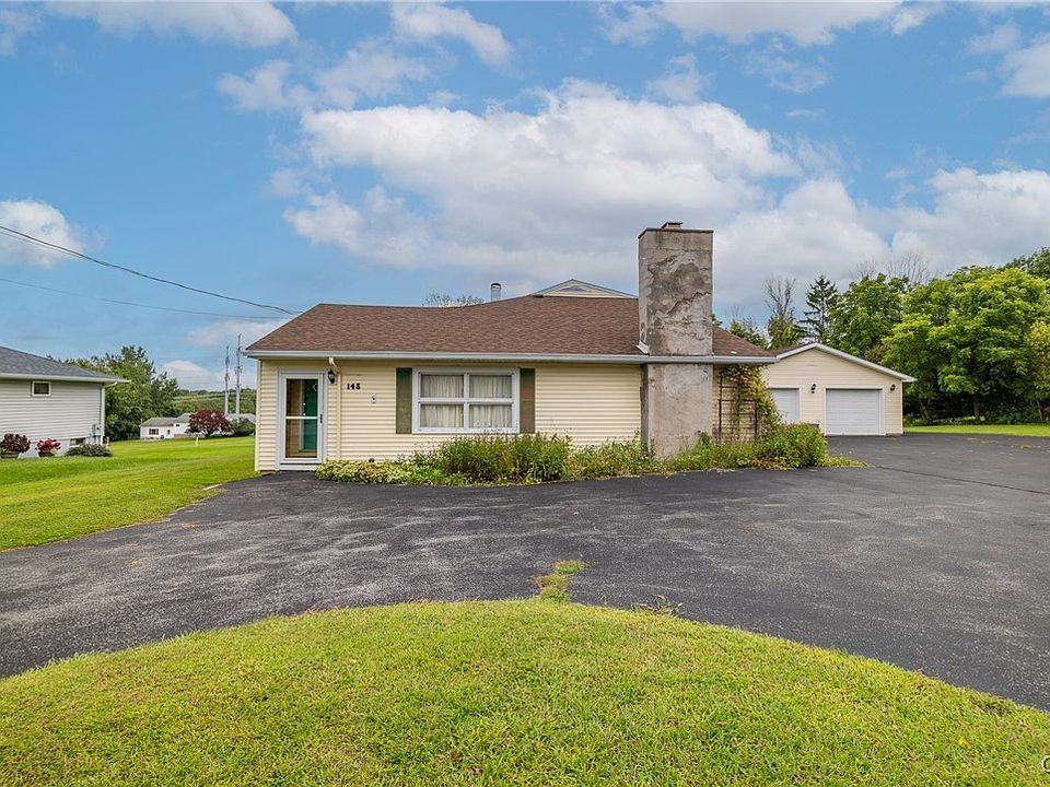Welcome to 145 Hillside. This 2-story contemporary home offers beautiful country living conveniently located in Oswego. The house features a formal living room, a casual family room with a wood-burning fireplace, and a kitchen with sliders to an enclosed porch. There are two bedrooms on the first floor with a full bathroom and three on the second floor with another full bathroom. Additionally, the house includes a full basement with a workshop and laundry facilities. The oversized garage can accommodate a hobby room or workshop, offering endless possibilities.