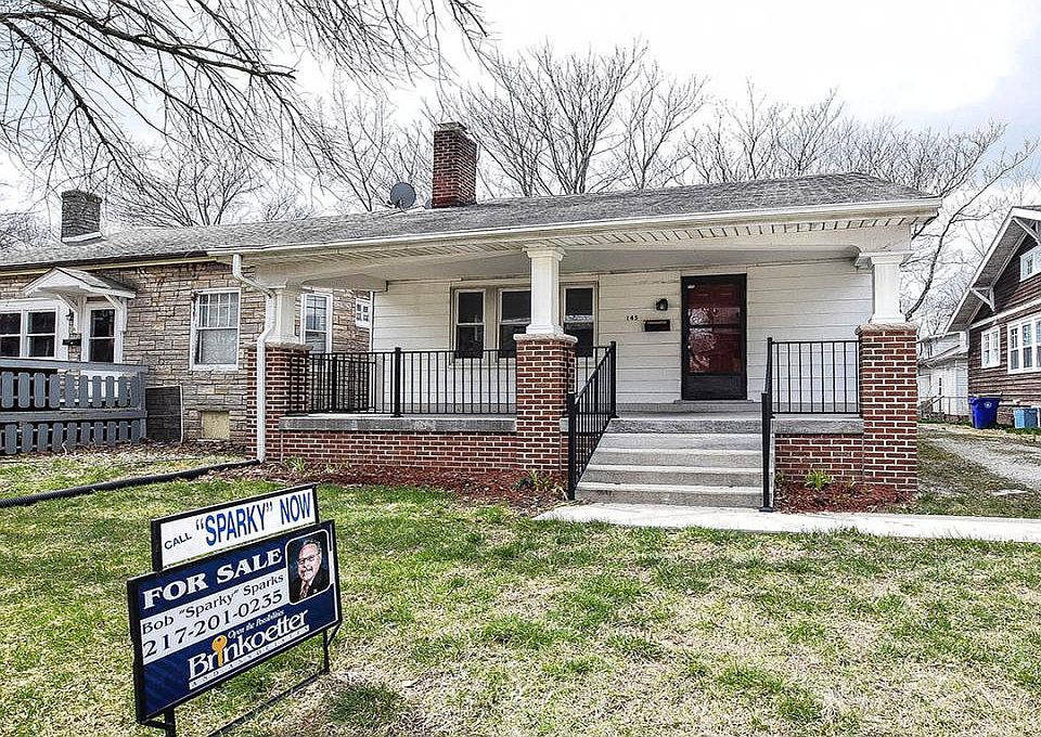 Move in ready! Spotless, clean and bright interior completely repainted and new carpet installed in this sturdy 2-bedroom home. Newer 6 panel doors and maintained mechanicals. Sandwiched in between Millikin Place and Millikin University, this cute neighborhood is changing for the better and just a short walk from trendy Oakwood Business District and Dennis Elementary. Large living room, dining room, and kitchen (with refrigerator and stove). Full bathroom on the first floor and an additional toilet/shower in basement. Washer and dryer hookups located in both kitchen and basement. Layout lends itself to additional bedroom(s) being added in either the living room and/or the full basement that has a finished man cave. Recently rebuilt concrete and brick front porch extends the width of the house. Back yard can be easily converted into a dog run. With small front yard and hassle free metal siding, new owner can focus on life and not maintenance! Many updates adorn this close to Millikin bungalow. Replacement insulated vinyl windows. Fireplace never used or inspected. Shared driveway.