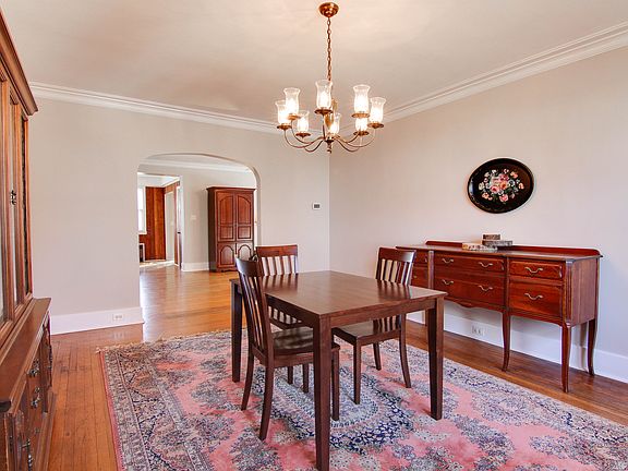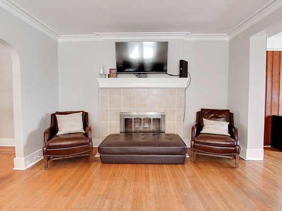 Move right into this charming 3 story brick home. A level yard w/low maintenance greenery & an attractive front door w/stained glass window welcomes you into an entry w/ceramic tile flooring. Left of the entry is a den. Adjacent to den is a spacious MR that has original hw floors that flow into the LR. LR has a deco FP, mantel, crown molding & is open to the DR which has lg picture windows. Light & bright KT boasts plenty of counter top & cabinetry, ss appliances & is open to a well-appointed eating area. PR is located next to stairway. Ascending upstairs is a beautiful stained glass window that is tucked under a deco arch. 1st BR on the 2nd fl has hw floors & sufficient closet space. 2 additional well sized BRs; ea w/generous closet space & a full bath complete this level. 3rd fl has a lg master bedroom w/a walk-in shower en-suite. LL includes a finished GR & sizable laundry room with access to backyard. Delightful home is complete w/1 car garage, patio & private fenced yard.