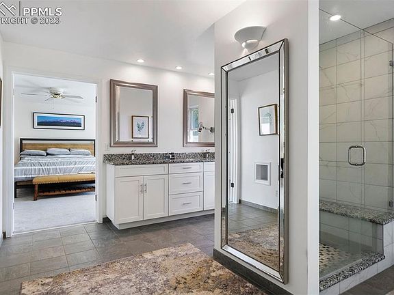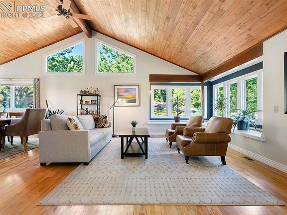Tucked away on a very quiet cul-de-sac in Broadmoor Hills, this 2-story home with side-entry garage has been updated with a clean and modern aesthetic with plenty of natural wood to highlight * Open floor plan with vaulted wood ceilings that are even more impressive in person * Windows galore that provide an abundance of natural light * Spacious composite deck in back complete with hot tub and beautiful landscaping / trees for a combination of views, vibes, and privacy that is hard to beat! * Five-piece Master suite has four closets plus an attached office / nursery / bonus room with private deck – the bonus room could easily be converted to a huge walk-in closet, as well! * Slab granite kitchen with stainless steel appliances including dual ovens and beverage fridge * Flexible formal and informal dining spaces * Lower level bedroom suite is garden level facing south for lots of natural light, greenery views, and stylish barn door leading to rec room * Gleaming hardwood floors in an immaculate home * Air conditioning and casement windows for summertime – plus fireplace set into the floor-to-ceiling rock walled great room for cozy winter nights * Award-Winning Cheyenne Mountain D12 schools (#1 in the state of Colorado) * Convenient and coveted location – just a couple minutes to Broadmoor Valley Park and the Country Club of Colorado *