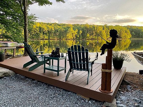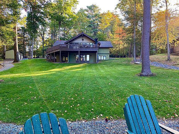 SOLD December 21, 2020 $615,000.00. This Scandinavian styled lakefront home is a perfect blend of both rustic and contemporary living at its best, offering 5 BDs., 3 full BAs. fully applianced kitchen, great room w/cathedral ceiling, wood/coal burning stove, fully finished walk-out lower level w/large family room, Kalmar pine exterior, new asphalt roof, new leaf guard gutter system, level lot with 101 feet of level lake frontage on Lake Tanglwood, large front deck, storage shed, new dock with new composite attached deck. Most furniture and some boats included. Tanglwood Lake is a 35 acre lake for fishing, kayaking and boating. The community has a fitness center, tennis courts. basketball court, nature trail and ball field. Residents of Tanglwood Lakes community have rights to Lake Wallenpaupack with a marina/boat launch and with a private beach and pavilion. Winding through the community is the Paupack Hills Golf Course with lakeside dining at the Clubhouse restaurant and bar. Please contact homeowner at relaxingbythelake20@gmail.com or 516-445-8715 to schedule your appointment.