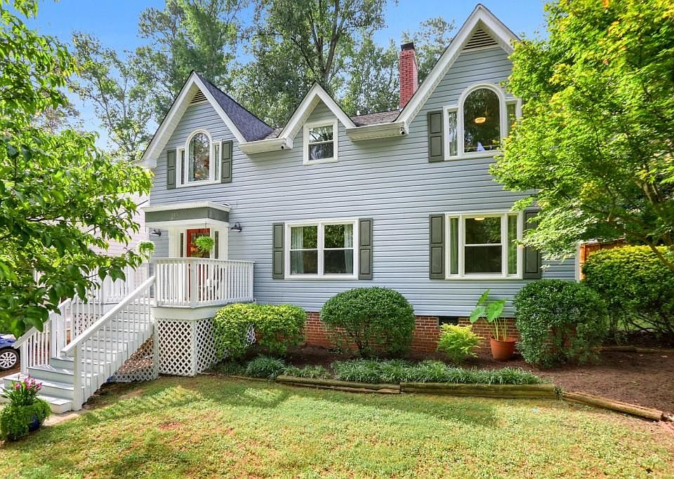 Charming Winnona Park home right across from Winnona Park Elementary School field! The oversize foyer is open to the living room with wood burning fireplace and dining room. Kitchen with stainless appliances open to family room for great entertaining. French doors to deck and landscaped, fenced backyard. Bedroom, office and bath on main level. Upstairs master with sitting area, juliet balcony and beautiful bath. Three additional bedrooms and full bath. Two tankless hot water heaters and electric vehicle charging. Owners have made many improvements to the home and it shows. Great location - walk to downtown Decatur and Agnes Scott College.