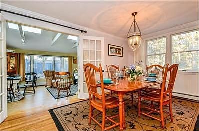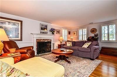 This is a fantastic turn key 4 bedroom home located in the desirable Duck Meadow Tennis Association with a long summer rental history. This contemporary home features a first floor bedroom with walk in closet plus 3 additional bedrooms on the second floor, all with walk in closets. A convenient first floor laundry/mud room with lovely tile floor, sink & office area. Hardwood floors throughout the house, tile in the beautiful kitchen with granite counters, custom built wainscoting and crown molding, fireplace with custom mantel in the living room, beautiful sun room, AC, farmers porch in front, 2 car garage with above storage, custom deck and a pergola in the fenced in back yard. The entire summer season is already booked at $2,300 a week. Watch the virtual tour and ask for detailed list of new construction and updates.
