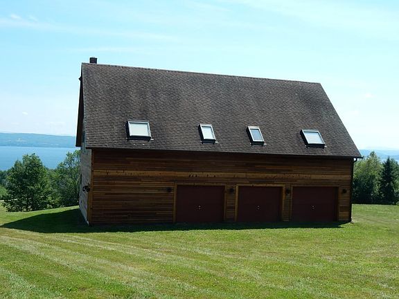 Stunning Views! One of the best views the Northeast Kingdom of Vermont offers. This contemporary cedar sided home sits high above Lake Memphremagog where you can see for miles North into Canada and South to Willoughby Gap. It has been used as a vacation paradise since built. 2-3 bedrooms, bath, office, kitchen, dining room and living room. Beautiful, large bay windows produce an everlasting view and makes for a bright, airy home. Crisp, clean lines where wall and wood meet defines the quality of this home. Solid oak doors, ceramic flooring, skylights and white cabinetry make you think of European flare. Under the living space is a spacious 3 car garage. All set on 8 acres of field and woods. Come experience four seasons. Close to Jay Peak Ski Area, golf courses and snowmobile trails.