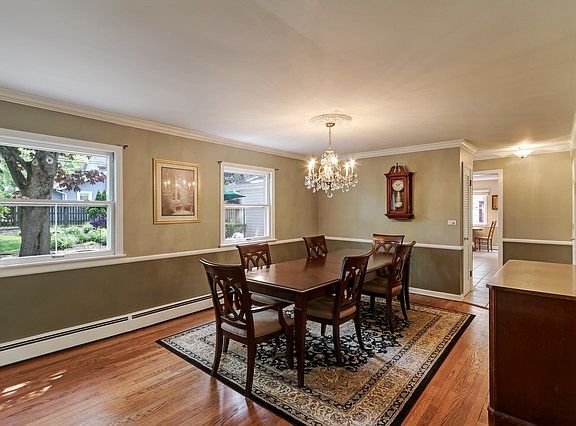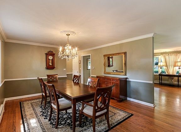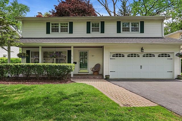 Exquisite colonial with a remarkable front porch on a private interior parcel minutes from downtown Barrington. A charming entry and gorgeous wood staircase welcomes you to an expansive living room and intimate dining room each benefiting from an ornate cherry wood mantle fireplace and scenic views of the yard. The exemplary eat-in kitchen features cherry cabinets, stainless steel appliances and breakfast bar all overlooking the impressive family room with a gorgeous brick fireplace and sliding glass doors to yard! This fabulous home is also complete with hardwood floors throughout and updated powder room. Commencing to 2nd floor where there are 4 generous size bedrooms and 2 full baths consisting of a master suite with 2-closets and newly refined master bath with glass shower, rain shower heads, new tile and vanity! Full partially finished lower level with built-ins and 2-car garage! The serene fenced yard offers incredible landscaping and concrete patio. Near train and restaurants!