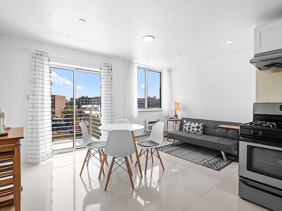 Bright and airy, penthouse style condo in Flatbush with a balcony, low monthlies, a tax abatement through 2026 and a private storage cage. This delightful apartment is located on a charming, tree-lined block on the top floor of a relatively new boutique elevator condo building just steps away from major retail stores, restaurants, coffee shops and transportation options. Entertain, relax or work from home in your spacious living and dining area which adjoins your private terrace. Sit outside and enjoy direct sunlight and unobstructed city views overlooking Brooklyn. The spacious bedroom accommodates a Queen-sized bed and has a substantial closet. There are three additional closets in the foyer. In addition, the unit comes with a private basement storage cage. Building amenities include an elevator, laundry room and a private basement storage cage for the apartment. Walking distance from Brooklyn College, major retail stores like Target, Aldi, HomeGoods Walgreens, Chase and TD Bank. One block from the 2 & 5 train station. Starbucks located across the street. One block from the 2 & 5 train station and steps away from major bus lines (B6, B41, B44 & B103).