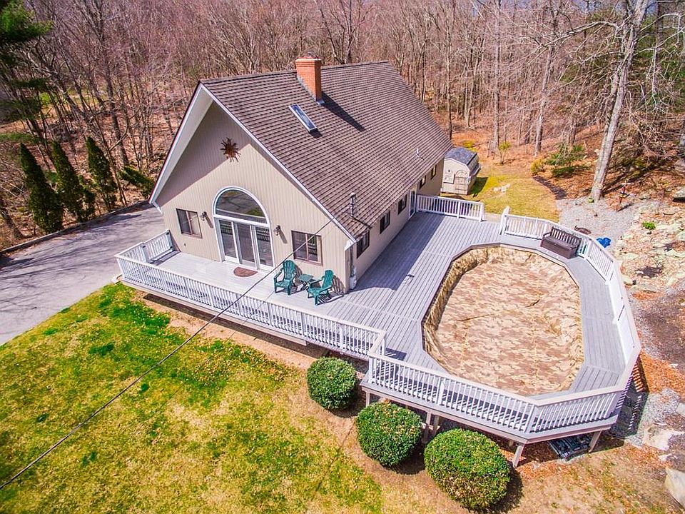 A PRIVATE SANCTUARY OF COMFORT AND CHARM LOCATED OFF THE BEATEN TRAIL, YOU WILL LOVE COMING HOME TO YOUR PIECE OF PARADISE TUCKED AWAY ON 3 WOODED ACRES. THE TIMELESS AND CHARMING ARCHITECTURE OF THIS A-FRAME CHALET FEATURES AN OPEN FLOOR PLAN WITH LOTS OF WINDOWS AND LIGHT. THE CENTERPIECE IS THE LOPI WOOD STOVE CAPABLE OF KEEPING THE HOME WARM ALL WINTER. TREX DECKING SURROUNDS MOST OF THE HOUSE AND THE SWIMMING POOL, PROVIDING AMPLE SPACE FOR ENTERTAINING AND OUTDOOR LIVING. SECOND FLOOR MASTER WITH EN SUITE BATH AND LARGE JACUZZI TUB, BEDROOMS 2 & 3 ARE LOCATED ON THE MAIN FLOOR WITH SECOND BATH. THE WALKOUT BASEMENT IS PARTIALLY FINISHED AND PROVIDES AMPLE LIVING SPACE AND IS CURRENTLY USED AS A GYM WITH A SAUNA (NEGOTIABLE). ALSO AVAILABLE IS A WORK BENCH AND PLENTY OF STORAGE. YOU WILL APPRECIATE THE SENSE OF SPACE THIS HOME PROVIDES. IDEALLY LOCATED TO I-95, AND A QUICK COMMUTE TO NEW YORK AND BOSTON, THIS HOME IS FOR FAMILIES, OR A SECOND HOME TO ESCAPE.