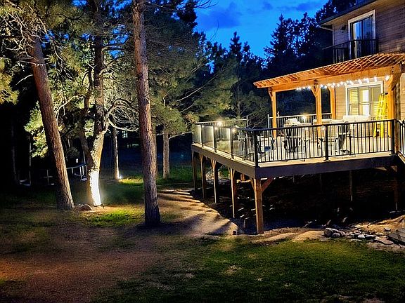Welcome to a charming, rare-find home nestled in the heart of Woodmoor that includes a 35x35' RV garage that is tucked away in the corner of a scenic treed lot. Located on a small quiet culdesac yet close to town, this home enjoys a very private setting. An inviting front veranda sets a gracious tone for guests & creates a sweet space to relax & watch the summer storms pass by. A huge rear deck is perfect for entertaining. The layout of this home will never go out of style w/plenty of living space to enjoy everyday life. The very spacious eat-in kitchen incl built-in desk space perfect for a drop zone when you walk in from the garage or the back door. The kitchen has a double-door walk-out to a large terraced deck w/a planter, so perfect for entertaining. The living room will make anyone pause to appreciate the serene setting with a gas-fueled fireplace & several windows that bring the beauty of Woodmoor inside. The family room can be easily closed off w/ glass French doors to make it a peaceful space to relax or it can be left opened up to the kitchen. The laundry room is well laid out with a closet, a full-sized sink & very useful cabinetry. The large master suite is another getaway to enjoy w/ a sitting area. The enormous master closet has so much useful space to spread out. The other upper bedrooms share an updated Jack & Jill bathroom. There is a "secret playroom" upstairs, too! At the bottom of the stairs to the basement you'll find a custom office, perfect for a home business w/ lots of built-in cabinetry. Also downstairs is a huge family room, again more great space for family & friends to enjoy, especially in winter. The property itself is uniquely located w/ so much beauty + lots of space for play for kids & adults alike. Close to town & all the local amenities. New interior paint ; New exterior paint ; New wood-look master bathroom flooring ; Newly refinished hardwood flooring ; Plantation shutters ; Pool table ; Stone-coated steel roof by Decra