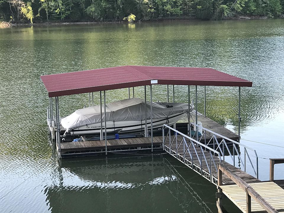 Lakefront property with year round water! Single story home, 3bd/2ba,sun room,large den, game room, 2car garage with half bath, and basement garage. Plenty of room for entertaining and perfect for weekend or year round living. Single slip floating boat dock. lift does not stay.
