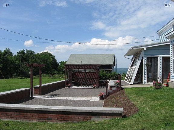 A Fabulous place to call home. Large Country Home now on 6 acres that has large formal rooms, pocket doors, classic wooden door casings, and sweeping views of the Western slope of Cayuga Lake. There are 5 plus bedrooms, 2 full baths, all glass Southern exposure sun room, a laundry room den combo, a main level bedroom. Amazing custom court yard and Pergola. Private deck and pool area.