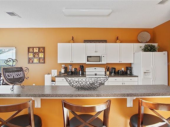 Well maintained SOUTH facing pool home with all furnishings included. You will not want to miss this one! As you enter the home, the formal dining room is on your right with a large table that seats 6 and has an entry arch leading into the large open-concept kitchen - making it easy for serving. Directly across from the kitchen is the large and open living area which also looks out onto the pool patio. With a large king bedroom on first floor and second floor Master bedroom, this home is set up perfectly and ready for move in. Home is currently a short term vacation rental with bookings in place. These may transfer over if current management company stays in place. Location is perfect and only minutes to the attractions areas.