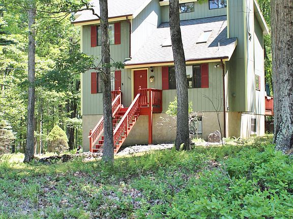Masthope Contemporary...Cozy 3 bedroom, 3 bath, salt box style home with plenty of space! The main level features an open concept floor plan with a brick wood burning fireplace, bedroom, laundry room, eat in kitchen, spacious deck & screened porch perfect for entertaining. the second level offers 2 spacious bedrooms plus a loft area for additional sleeping for friends and family. Additional guests will enjoy the privacy of the finished lower level as they enjoy the large family room, full bath and a full kitchenette...Enjoy all the Masthope Community has to offer including Big Bear Ski Area & Lodge, outdoor pool complex, Delaware River access, fitness center, motor boating on Westcolang Lake, horseback riding, central sewer & water and security plus so much more! Truly a must see!