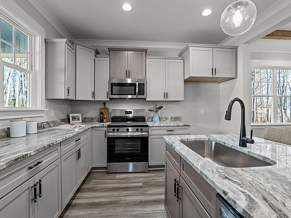 USDA FINANCING ELIGIBLE! CUSTOM BUILT BY AWARD WINNING BRANDYWINE HOMES! Wooded Cul-De-Sac Lot w/NO HOA! Upgraded LVP Flooring & Crown Molding Throughout Main Living Areas! Kitchen: features ''Fantasy Brown'' Marble Countertops, Custom Painted Cabinets w/Satin Nickel Pulls, Custom ''Fog'' Painted Island w/Breakfast Bar & Single Bowl SS Sink, SS Appls Including Smooth Top Range, Built in Microwave & Dishwasher! Owner's Suite w/Plush Carpet, Cove Crown Molding & Spacious WIC! Owner's Bath: offers 12x24 Staggered Tile Flooring, Dual Vanity with ''White Zen'' Quartz Countertop & Rectangular Sinks, ''Fog'' Painted Vanity Cabinets & Walk in Shower! Family Room: features 4x4 Tile Surround Gas Log Fireplace w/Custom Stained Mantle & French Door to Rear Covered Porch! Custom Stained Mud Bench/Drop Zone w/Access to 2-Car Garage! Sealed Crawl Space & So Much More!