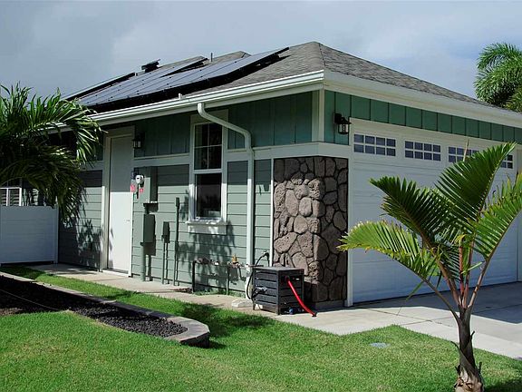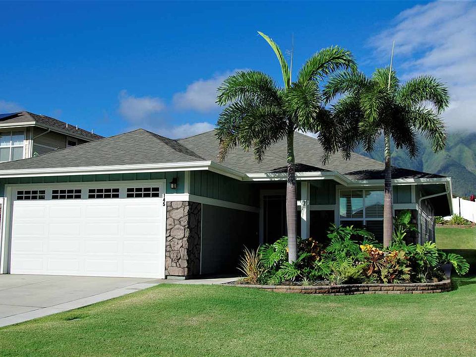 Single-story home near The Dunes Golf Course in The Parkways at Maui Lani with over $100,000 in upgrades. This Kahili Plan-9 features owned SunPower Black X-Series Solar Panel System with Tesla Powerwall Battery, Solar Hot Water System, Lennox Central A/C, Plantation Shutters, Artemis Ceiling Fans, Granite Kitchen Countertops, Custom built-in Desk and Bookcase in second bedroom, Maui Closet Organizers in all bedrooms, premium appliances, finished 2-car garage, and much more.