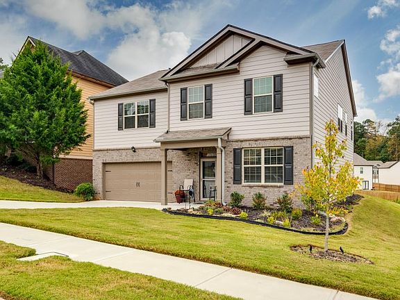 Better than new! This wonderful one-year old resale is D.R. Horton's popular and sought-after Halton Plan. This spacious beauty offers comfort and a design for effortless living. The foyer welcomes you to an open and bright flex room. Luxury vinyl wood plank offers the visual beauty of hardwoods on the first floor. Exquisitely crafted white kitchen cabinets, granite countertops, tile backsplash and stainless Frigidaire Appliances outfit the kitchen. An expansive kitchen island opens to the cozy family room. The family room is graced by a gas fireplace surrounded by slate surround. The main level also features a guest bedroom outfitted with carpet and a full bathroom. You will love the oversized master suite with a sitting room and the master bath featuring granite countertops and tile flooring. Three additional bedrooms and a full bathroom are on the second level. An upstairs living area complete the second level! Relax on the outdoor patio overlooking a nice sized sodded back yard. Smart home features included. Five years of alarm monitoring provided by HOA. Pest Ban built in pest control system. Minutes to Camp Creek Market Place, I-285 & 85. Quick access to Hartsfield International Airport. This home is a must see!