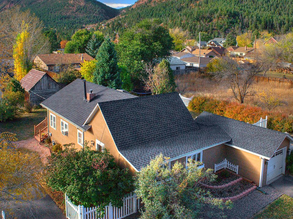 Think Colorado Antique with a current flair! Nestled below the mountain range and very close to Palmer Lake, this beautifully remodeled home is up-to-date modern without losing it’s charm from it’s 1905 roots. Three bedrooms, two baths, front and rear decks and a one of a kind antique barn just enhance the past-meets-present feel of this property. Inside the home, restored hardwood floors and wood stove are warm and inviting. You'll love the exposed original timber wall in the front hallway - It's a fabulous conversation piece!! The kitchen has been remodeled to include stainless steel appliances - a range with double ovens, dishwasher and French door refrigerator. Slide the barn door to reveal a full, modern bathroom with free standing shower, frameless shower door, and dual vanity with marble countertops. A loft upstairs offers so many possibilities - space for a large master bedroom, a bunkhouse for the kids, yoga studio, or a fantastic retreat! Take a peek into the hall bathroom to find a truth window in the medicine cabinet - you'll see the original newspapers hidden within the walls! There are some sweet built-ins in the dining room - including a china cabinet and an ironing board. Downstairs, you'll find a family room, large walk-in pantry or storage closet, as well as a huge workroom. New roof and water heater give extra peace of mind to ownership. Outside, there's plenty of yard for kids, including playset, and the new large rear patio with fire pit is perfect for BBQing with friends while the sun rests behind your view of the hills. There's a fenced dog run and small greenhouse and you’ll love the waist level fenced garden with lights. The new white picket fence with gates to side driveway completes the charm of the home. You just may have found your Colorado sanctuary!