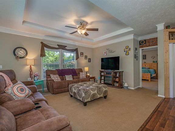 • Fireplace, Split Bedroom Plan, Ceiling Fan, Gas Logs, Trey Ceilings