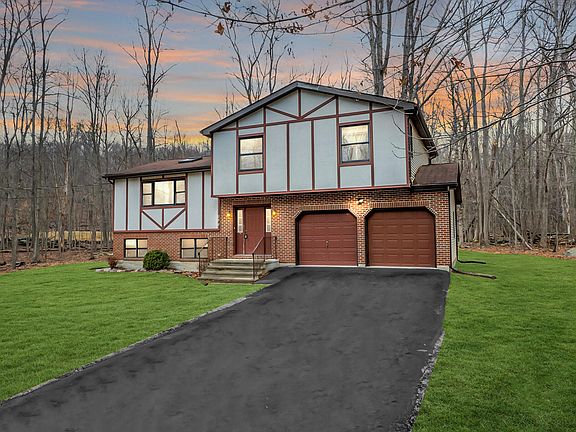POCONOS TUDOR STYLE SPLIT LEVEL Well-Built Brick & Stucco 4BR 2.5BA Split Level Home w/ Finished Lower Level Situated on Flat 1.02 ACRES in Quaint Timber Hill Community Backing Up to 300 Acres of Act 319 Forest Reserve & 147 Acres of PA State Game Lands! No STR Allowed. Updated Modern Eat-In Kitchen w/ Granite Counters, Custom Tile Backsplash & Oak Hardwood Floors Throughout Plus 2-Car Garage! Large Living Room has Skylight for Natural Lighting & Stone Fireplace Plus Dining Area Leading to Outdoor Deck Looking Out into Hundred of Acres of Forested Woods! Master Bedroom has Wide Closet, Oak Hardwood & Private En-Suite Bath w/ Soaking Tub! 2 Additional Generous Sized Bedrooms w/ Main Bath! Foyer Area has 4th Bedroom/Den/Office & Half Guest Bath! Lower Level Features Easy Maintenance Lux Vinyl Plank Waterproof Floors & Laundry Closet Plus French Drains & Sump Pump! Paved Driveway for Additional Parking! Call Today for Your Private Showing!