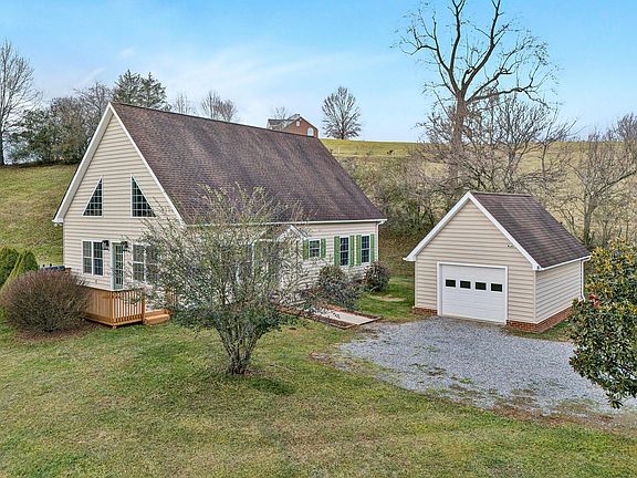 Welcome to this charming Cape Cod-style home, perfectly positioned on 2.1 peaceful acres in Botetourt County. Offering the ideal blend of tranquility and convenience, this home provides one-level living with a spacious loft that offers ample space to expand and add additional bedrooms.The open floor plan features vaulted ceilings and an abundance of windows, flooding the home with natural light and creating a bright and airy atmosphere. The property is equipped with dual-zoned heat pumps for year-round comfort and a generator hook up. A one-car detached garage, plus a 40x48 metal garage with 200 amp service, concrete floors, and a stub up for water. A 2 bay doors is oversized at 15', Rear bay door is standard sized. Whether you're looking for a space for your RV, boats, cars, a workshop, or even a small business, this versatile structure is perfect for your needs with endless possibilities.