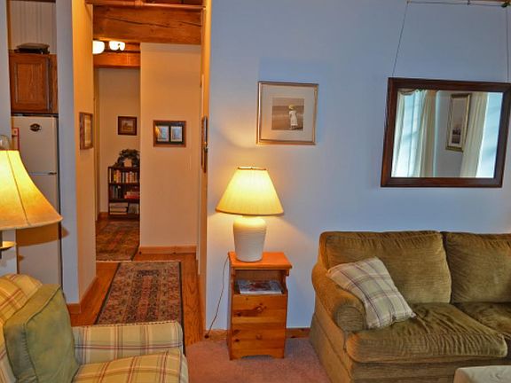 2 Bedroom Condo with Fireplace at The Mill in Ludlow Village... Enjoy the rustic feel of this adorable 2 bedroom home with wood burning fireplace. The exposed beams, wood floors and fireplace really remind you that you're at a VT resort! Walk to restaurants, stores and galleries or jump on the shuttle just outside your building and get dropped off at Okemo. This is a fully furnished, well maintained unit at a great price. Washer and dryer room available in the condo building. With HOA fees including parking and firewood, that makes this a great value. Fuel Surcharge approximately $500 per quarter, adjusted annually according to usage.